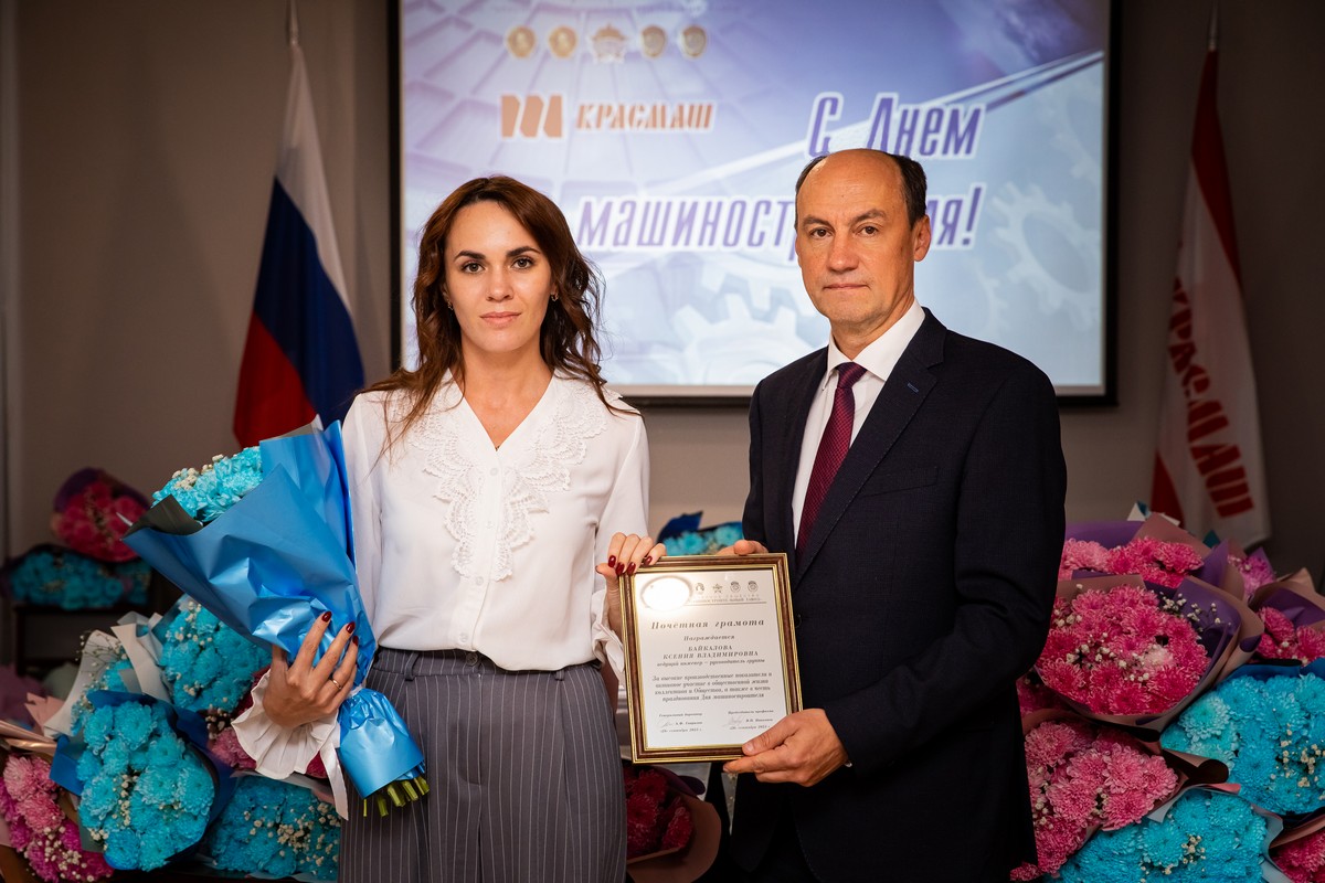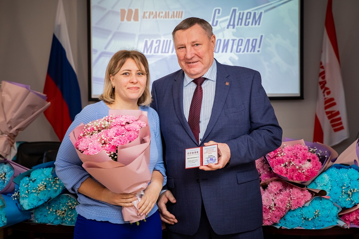 Торжественная церемония награждения лучших тружеников предприятия прошла в актовом зале нового заводоуправления. Коллектив поздравил с праздником генеральный директор АО «Красмаш», председатель регионального отделения Союза машиностроителей России Александр Гаврилов. Он подчеркнул значительный вклад предприятия — как в исторический период, так и в настоящее время — в решение множества ключевых государственных задач.