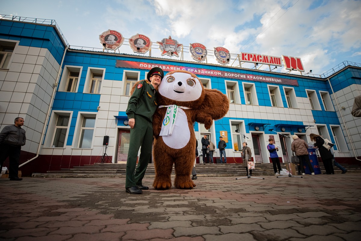 С самого утра на главной проходной завода работников встречали активисты Молодежного совета предприятия, вручавшие символические подарки. Настроение красмашевцев поднимали аниматоры и фотобудки, в которых каждый желающий мог сделать забавные снимки на память.