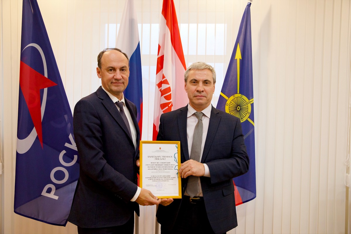 Регсовет завершился церемонией награждения. Благодарственными письмами администрации города за помощь в организации и проведении акции «Свеча памяти» к 80-летию Победы были отмечены АО «Красмаш», АО «РЕШЕТНЕВ», АО «ЦКБ «Геофизика», СибГУ им. М.Ф. Решетнева. В честь Дня машиностроителя благодарностей СоюзМаш России удостоены генеральный директор ООО «Вариант 999» Сергей Синников, директор ООО «Технорос» Игорь Кацер, директор Красноярского техникума промышленного сервиса Ирина Магомедова. Последняя в свою очередь вручила Александру Гаврилову и Андрею Шарову благодарственные письма КТПС за большую организационную работу по подготовке кадров.