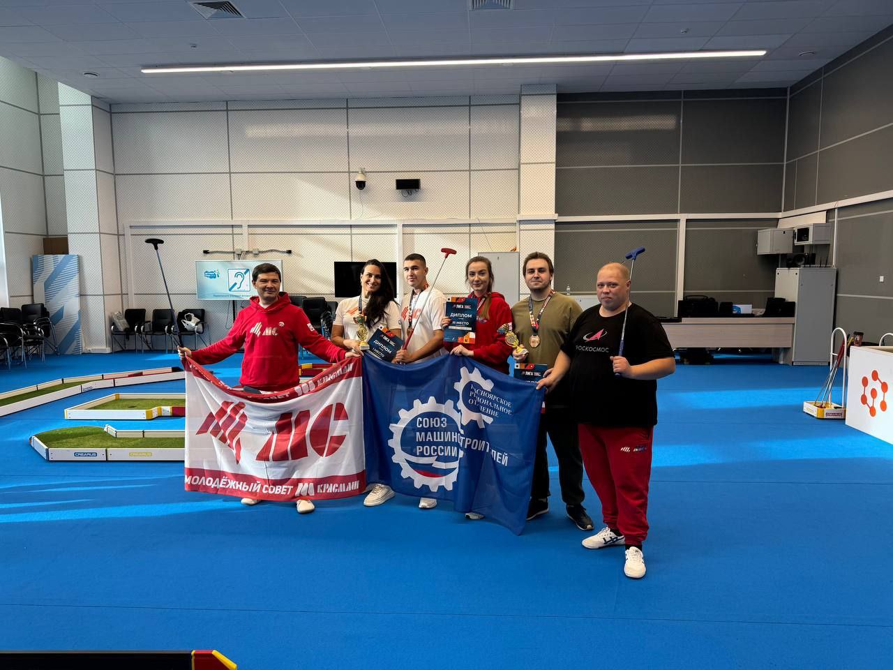 Активисты Молодежного совета Красноярского регионального отделения СоюзМаш России приняли участие в состязаниях Лиги трудовых коллективов, прошедших в минувшие выходные. Сборная машиностроителей заняла первое место в играх по фиджитал мини-гольфу, организаторами которых стали Красноярская федерация гольфа, министерство спорта региона и Центр спортивной подготовки.