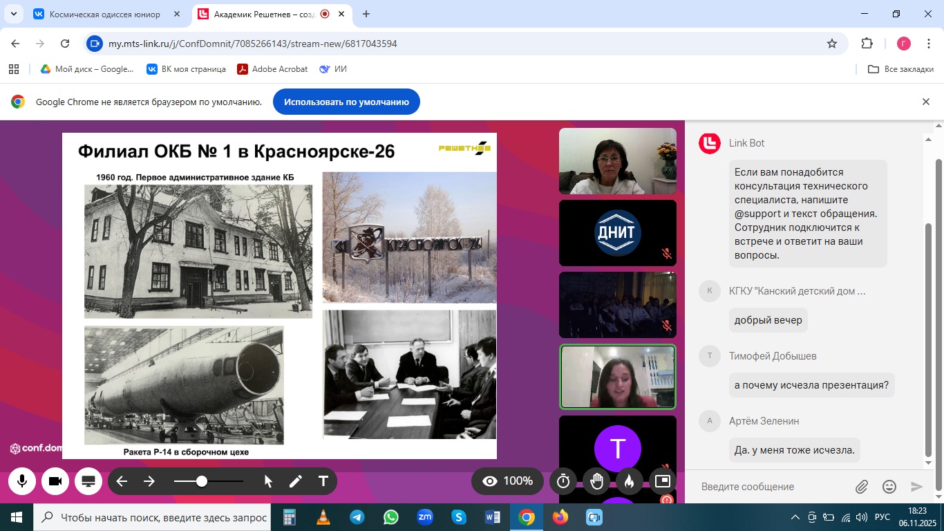 Дарья Юрьевна рассказала ребятам о жизни и трудовом подвиге конструктора, которого по праву можно считать основателем ракетно-космической отрасли в Сибири.