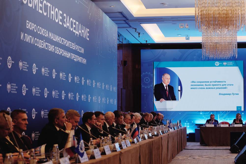 Открывая заседание, председатель Союза машиностроителей России, глава Госкорпорации Ростех Сергей Чемезов отметил, что прошедший год стал для промышленности периодом высокой концентрации усилий и ответственности. По его словам, в сложных внешнеэкономических условиях российская промышленность сохранила устойчивость, обеспечила выполнение задач в полном объёме и в установленные сроки, в том числе по выпуску продукции для нужд специальной военной операции. «Рост обрабатывающих отраслей, по предварительным данным, составил почти 3%. Наша ключевая задача сегодня - не просто сохранить достигнутые результаты, а перевести их в устойчивую, долгосрочную систему развития промышленности и экономики в целом», - подчеркнул Сергей Чемезов. Он указал, что благодаря решениям Президента Российской Федерации и системной работе Правительства удалось перейти от вынужденного импортозамещения к созданию собственных продуктов, развёртыванию новых производственных мощностей и формированию устойчивых кооперационных связей.